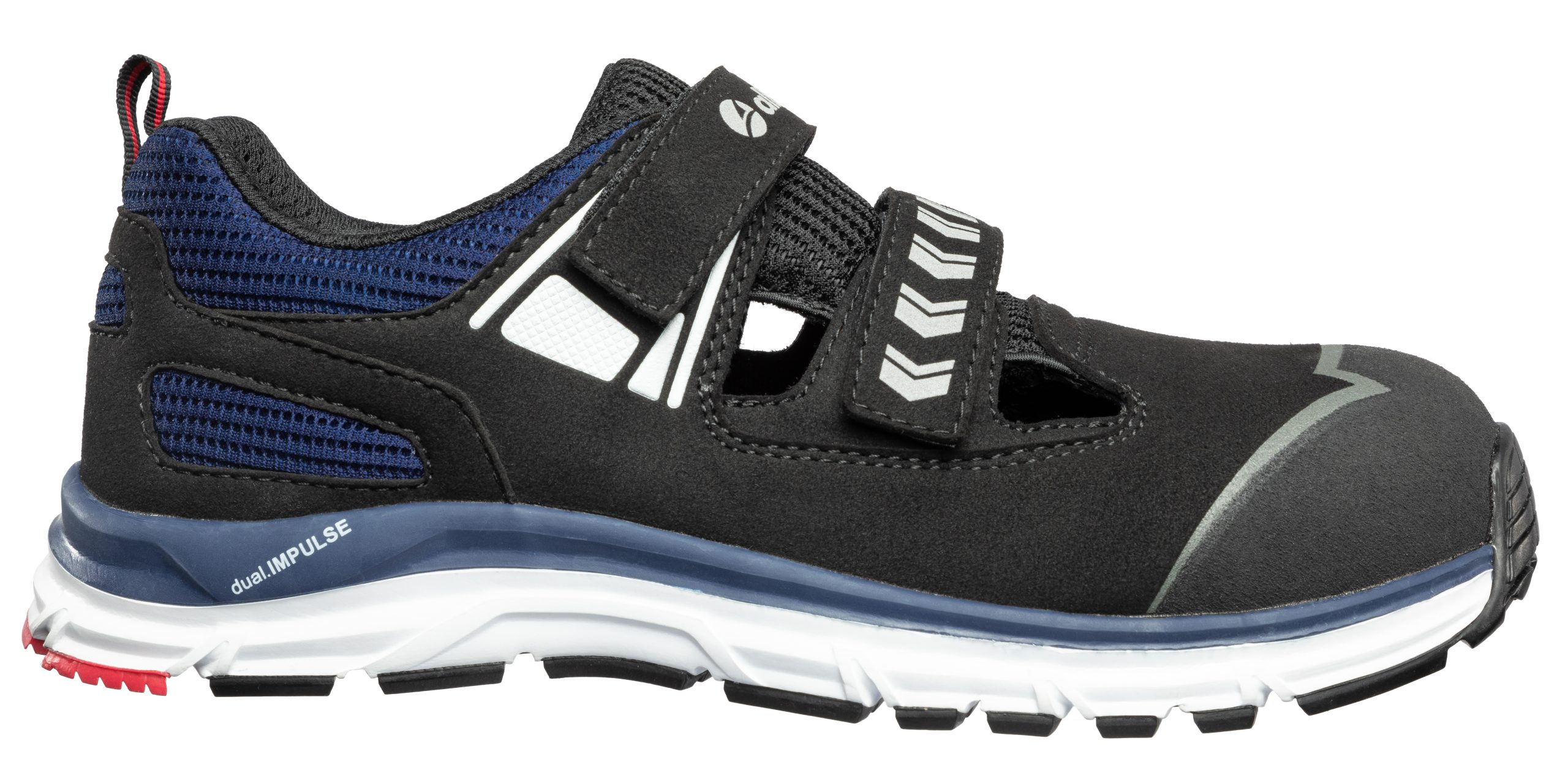 Üvegszálas orremerevítővel ellátott munkavédelmi szandál. Magas minőségű, lélegző, mikroszálas felsőrész, kopásálló textil elemekkel. További extrák: ESD, fémmentes, extrém könnyű súly, lélegző belső bélés, gyorsfűzős rendszer, anatómiailag kialakított comfit®AIR talpbetét, tépőzáras záródás, TPU orrborítás. DUAL.IMPULSE talpszerkezet, 300°C-ig hőálló, csúszásbiztos gumi talp. IMPULSE.FOAM® talpközép.