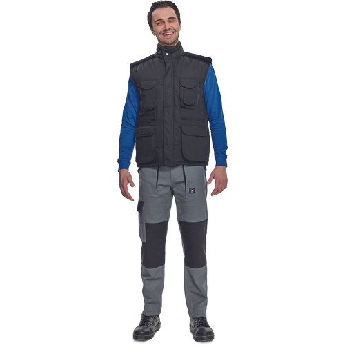 • bélelt mellény kordbársony vállrésszel • állógallér • fém patentokkal állítható bőség • húzózsinórral szűkíthető alsó szegély • gépi hímzésre alkalmas